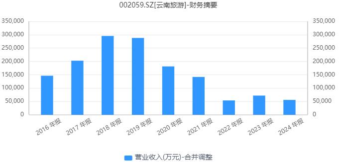 雖然擁有稀缺的旅游資源,但是在業(yè)績(jī)上,云南旅游卻沒(méi)有將優(yōu)勢(shì)轉(zhuǎn)化為利潤(rùn)。營(yíng)收方面,公司在2018年達(dá)到高點(diǎn)后就快速下滑,這幾年?duì)I收規(guī)?s水較嚴(yán)重,2024年公司的營(yíng)收5.57億元,僅相當(dāng)于2018年?duì)I收的18%左右。