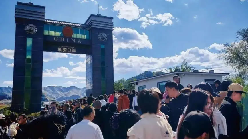 鴨綠江國(guó)門(mén)景區(qū)人頭攢動(dòng)(央廣網(wǎng)發(fā) 吉林省文化和旅游廳供圖)