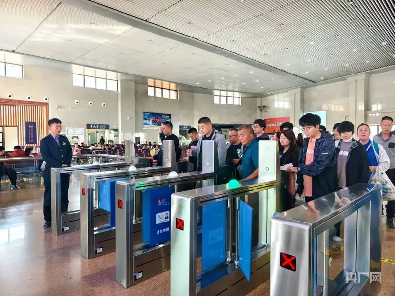 假日期間,奎屯站內(nèi)旅客正有序檢票乘車(chē) (央廣網(wǎng)發(fā) 王雅琪 攝)