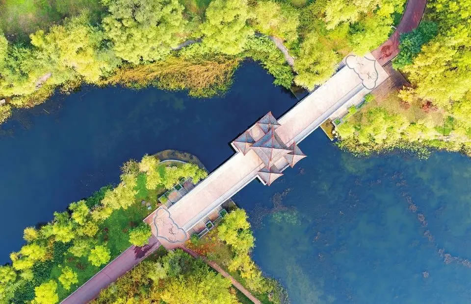 10月25日拍攝的臨汾市汾河文化生態(tài)景區(qū)。景區(qū)內(nèi)波光粼粼,水草搖曳,疊翠流金。近年來,當?shù)赝ㄟ^建設城市公園,綠化美化城市空間,實現(xiàn)開門見綠、推窗見景。(記者 李現(xiàn)俊)