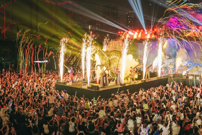 不僅有奇幻新世界,更有奇趣新體驗(yàn)。劇場里,《復(fù)活恐龍D計(jì)劃》魔法秀展現(xiàn)恐龍主題趣味魔法,《魯樂回家》音樂劇傳遞人與自然之間的溫暖,《恐龍島危機(jī)》特技表演詮釋冒險(xiǎn)旅途的驚險(xiǎn)刺激;項(xiàng)目前,“百龍軍團(tuán)”“角角見面會”“邂逅侏羅紀(jì)”等仿真恐龍的快閃互動實(shí)現(xiàn)了游客“與龍同行”的震撼奇觀;巡游中,“怪獸天團(tuán)”“逗趣南瓜團(tuán)”“鬼馬精靈”花車巡游從日落到夜幕,一路載歌載舞,在全新“奇幻D秀”結(jié)合電音派對點(diǎn)亮夜空與舞臺,為大小游客留下難忘的假日歡樂。
