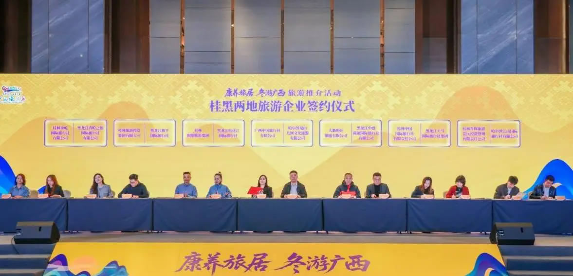 此次推介活動吸引了100多家桂黑兩地旅游企業(yè)進(jìn)行深度交流,并開展桂黑兩地文旅企業(yè)產(chǎn)品對接會,達(dá)成多項合作;顒蝇F(xiàn)場,7家廣西旅游企業(yè)與多家黑龍江省旅游企業(yè)成功簽約。