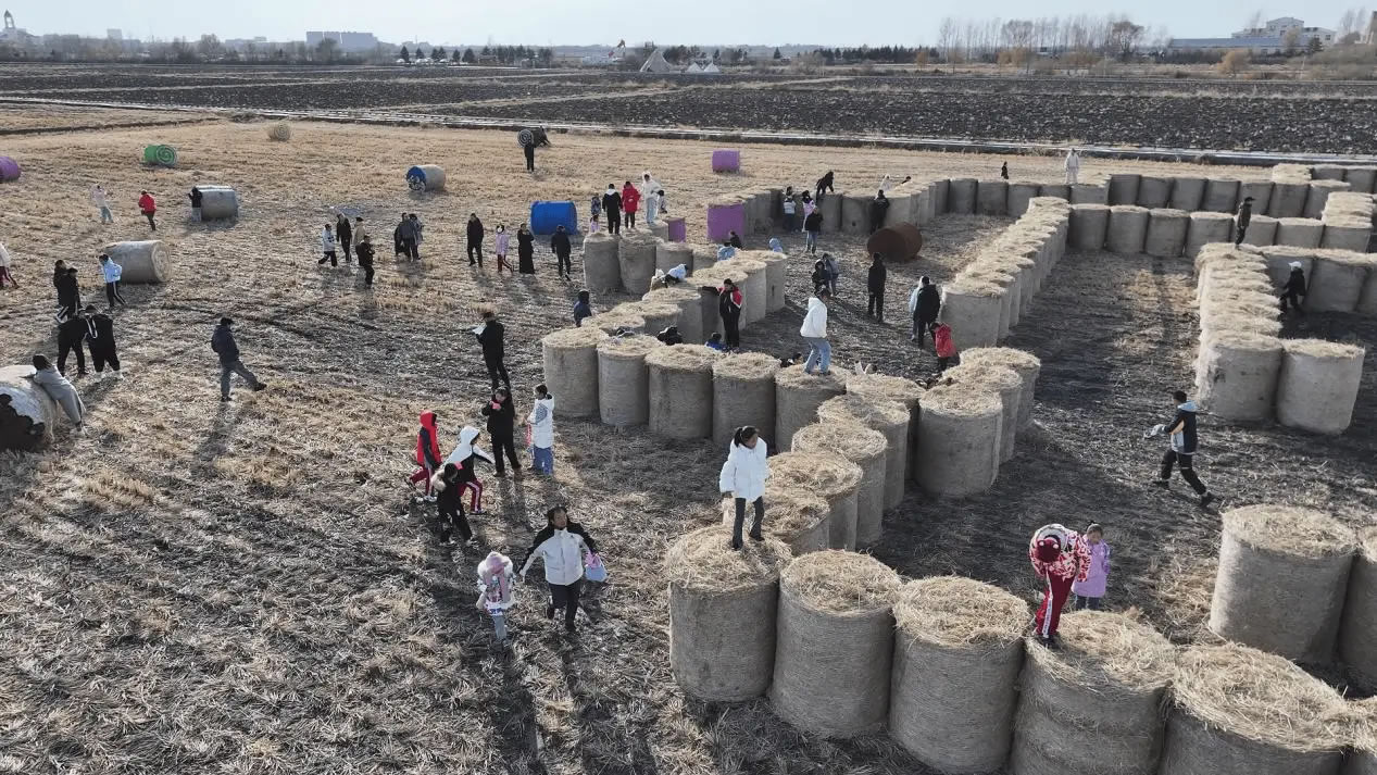 為打造同江秋季特色旅游產(chǎn)品,依托稻田公園彩繪稻草卷獨(dú)特景觀,11月1日,同江市開展“同江稻田撒野季”活動。百余名中小學(xué)生與親子家庭齊聚收割后的稻田,在連綿的稻草卷間暢玩趣味關(guān),體驗(yàn)了一場融合自然野趣、文化認(rèn)知與體育競技的秋日田園嘉年華。