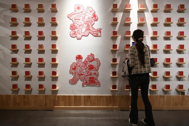 在這里,600余種、7大類印章琳瑯滿目,游客可以親身體驗版畫印、數(shù)字噴印、套章印等十余種印刷方式。其中,套章印尤其受青睞,通過4至7種不同顏色印章的搭配,可以呈現(xiàn)赭紅、石綠等豐富的敦煌色彩。形形色色的印章還可拓在卷軸上,成為融合古典與現(xiàn)代的創(chuàng)意禮品。