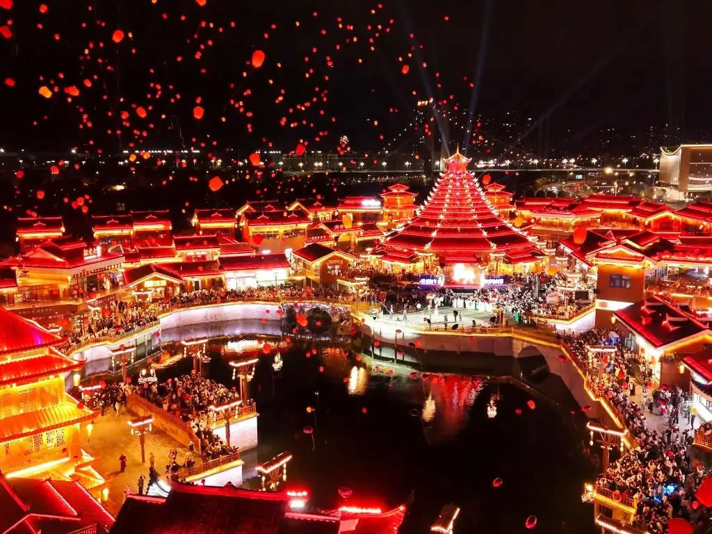 臨近午夜,榆樹灣·青春廣場迎來全天氛圍最高潮,游客們?cè)诳酌鳠魺裘嫔蠈懴滦履暝竿,在工作人員的指引下有序放飛。點(diǎn)點(diǎn)燈火隨風(fēng)飄蕩,與夜空融為一體,構(gòu)成“千盞飛燈映星河”的浪漫畫面。