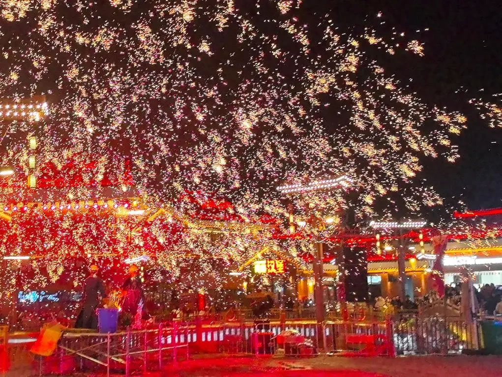 在湖南省懷化市鶴城區(qū)榆樹灣·青春廣場,一場“非遺+祈福”的盛典將節(jié)日氣氛推向高潮。元旦當(dāng)天,儺面舞者隨著鼓點(diǎn)騰躍,神秘古樸;傳承人赤腳踏上36把鋼刀搭成的“刀山”,引來陣陣驚嘆。夜幕降臨,打鐵花表演現(xiàn)場,傳承人將鐵水拋向空中,再用木板奮力擊打,千點(diǎn)萬點(diǎn)金花四濺,打造出“火樹銀花不夜天”的絕美景象。