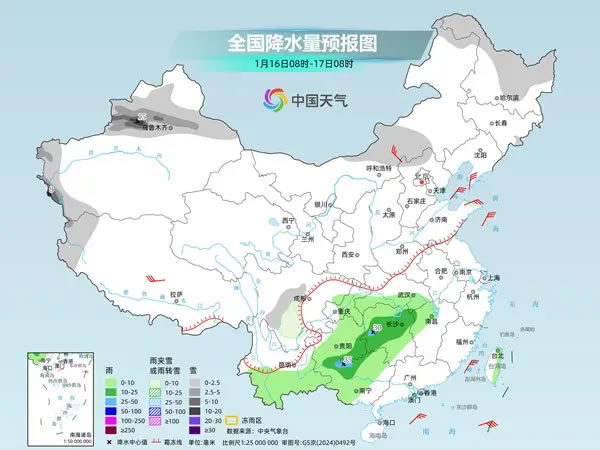 后天,新疆北部和南疆西部山區(qū)、西藏西北部、內(nèi)蒙古中東部、黑龍江北部、吉林中部、華北中東部、黃淮北部等地部分地區(qū)有小到中雪或雨夾雪,其中,內(nèi)蒙古中東部、新疆伊犁河谷山區(qū)和南疆西部山區(qū)等地部分地區(qū)有大到暴雪;黃淮中部、江南北部和西部、西南地區(qū)東南部、云南東南部、華南中西部等地部分地區(qū)有小到中雨。