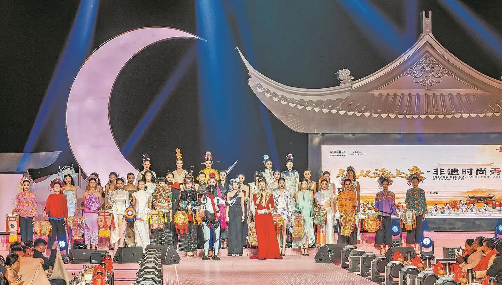一場以“風(fēng)從海上來”為主題的非遺時尚秀在蟳埔“宋時明月”舉行;顒由疃热诤纤未缹W(xué)與現(xiàn)代時尚,結(jié)合泉州夜間經(jīng)濟(jì)業(yè)態(tài),為現(xiàn)場300多位嘉賓呈現(xiàn)了一場跨越千年的非遺視覺盛宴。這場約40分鐘的活動,展現(xiàn)了泉州作為世界遺產(chǎn)城市的深厚文化底蘊,也探索了傳統(tǒng)文化在當(dāng)代的創(chuàng)新表達(dá)。