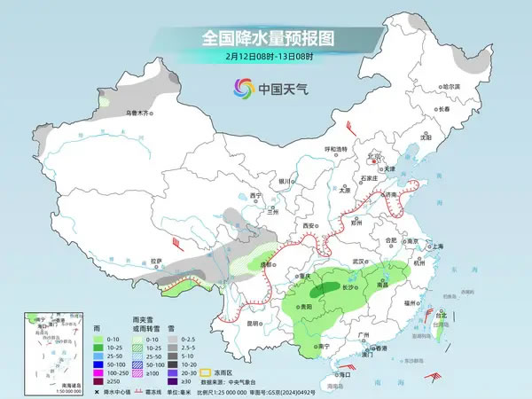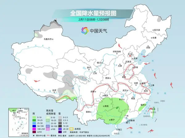 昨天,南方降水范圍較大,湖北西部、川西高原等地出現(xiàn)小到中雪或雨夾雪天氣,江南、西南地區(qū)東部、華南西部及湖北東部等地出現(xiàn)小雨,湖南東部、江西北部局地中雨。