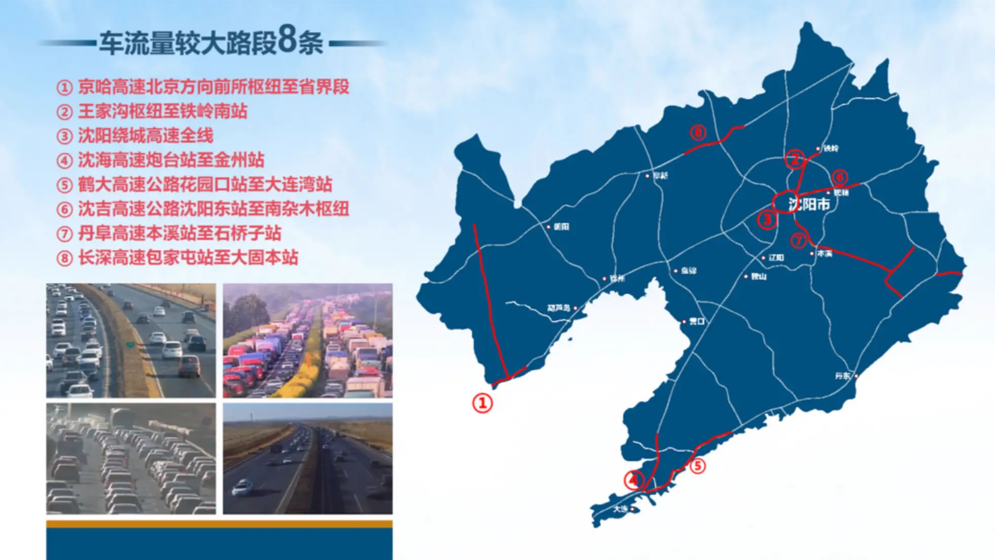 2月14日,記者從遼寧交投高速運(yùn)營(yíng)公司了解到,據(jù)預(yù)測(cè),春節(jié)9天,全省高速公路車(chē)流量將達(dá)到962.6萬(wàn)臺(tái)次,日均106.9萬(wàn)臺(tái)次,同比增長(zhǎng)36.5%。其中,沈陽(yáng)、桃仙等15個(gè)收費(fèi)站;京哈高速沈山段全線(xiàn)、沈陽(yáng)繞城高速全線(xiàn)等8條路段;京哈高速遼中、凌海、盤(pán)錦服務(wù)區(qū),長(zhǎng)深高速那四服務(wù)區(qū)等10個(gè)服務(wù)區(qū)車(chē)流量較大。