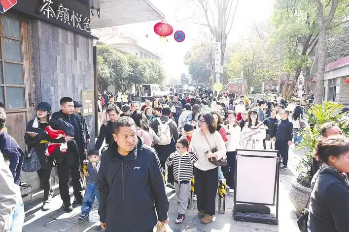 2月20日,武漢市武昌區(qū)曇華林人聲鼎沸,大批外地游客前來領(lǐng)略武昌老城的獨(dú)特魅力。 (湖北日報(bào)全媒記者 何宇欣 攝)