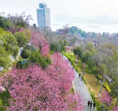 正在打造“世界級賞櫻目的地”的武漢,已實現“出門即賞櫻、移步皆春光”的全域賞櫻格局。數據顯示,全市櫻花種植總量超50萬株,涵蓋早、中、晚多個花期品種,分布在景區(qū)、公園、江灘、道路、社區(qū)等各個角落,形成連片成海、點線面結合的櫻花景觀體系。