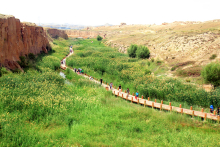 水洞溝旅游區(qū)有三公里長(zhǎng)的蘆花谷,蘆花谷內(nèi)蘆葦搖曳生姿,走在其間的小路上,陶醉在那葦蕩叢中,此刻心情一片寧?kù)o。湖泊面積近30萬(wàn)平方米,其中鴛鴦湖上修有原生態(tài)木橋4座,涼亭兩處,湖面上,蘆葦叢中百鳥(niǎo)翔集。碧綠的湖水、清脆的鳥(niǎo)鳴、唯美的畫(huà)面,是休閑娛樂(lè)的好去處。紅山湖內(nèi)綠波蕩漾,游船往來(lái),水岸長(zhǎng)城,難得一見(jiàn),在游船上觀賞雄偉的古長(zhǎng)城,別有一番情趣。當(dāng)你還沒(méi)有從土林景觀的童話(huà)世界中走出的時(shí)候,下船登上碼頭,又掉入了一個(gè)世外桃源內(nèi),那就是景區(qū)內(nèi)的沙棗灣。沙棗灣里沙棗樹(shù)叢生,六七月份沙棗花開(kāi)的時(shí)候,那一陣陣的清香又讓你流連忘返。