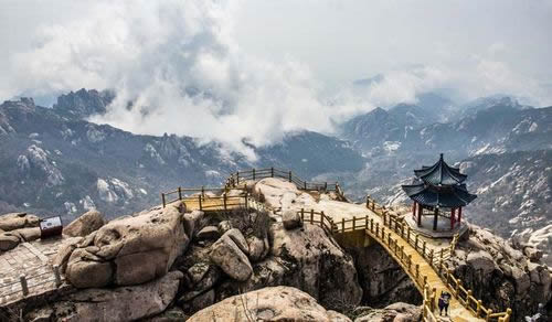 巨峰是嶗山主峰,俗稱“嶗頂”,位于嶗山中部群峰之中,海拔1127.3米。“云海奇觀”、“旭照奇觀”、“彩球奇觀”是巨峰景物中的三大奇觀。特別是“旭照奇觀”,綺麗壯美,被列為嶗山十二景之冠,稱“巨峰旭照”。清代乾隆年間即墨知縣尤淑孝有詩(shī)贊曰:“振衣直上最高峰,如發(fā)扶桑一線通。只有仙靈營(yíng)窟宅,更無(wú)人跡惹天風(fēng)。群山岳岳憑臨外,大海茫茫隱現(xiàn)中。持較岱宗應(yīng)特絕,碧天咫尺彩云紅。”