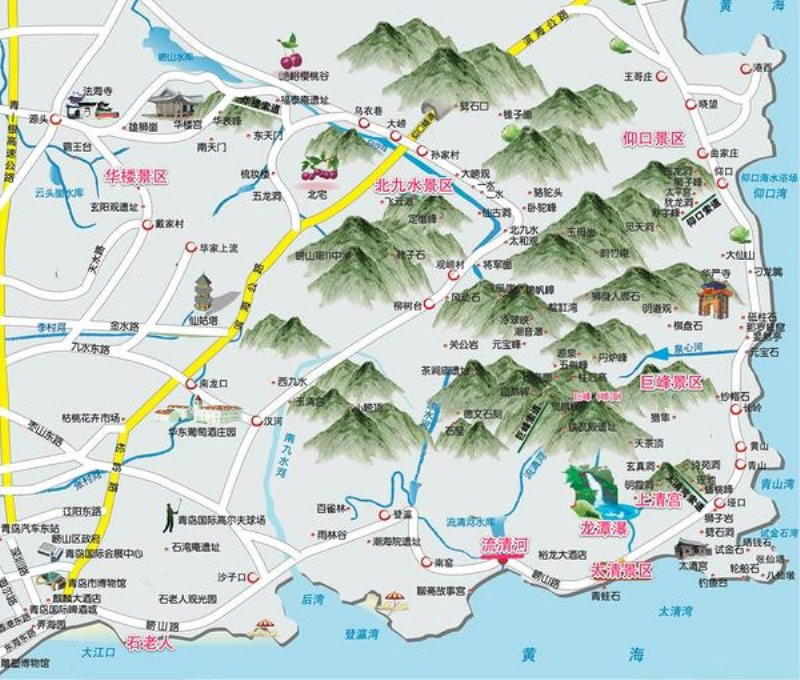 嶗山游覽線路共有四條其中陸路三條(南線,東線,中線),水路一條。