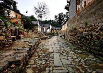 穿過已是斷墻殘?jiān)嫩组T、哨門,在泛著幽光的山石古道、石橋的引導(dǎo)下,走過一座座房檐上長(zhǎng)滿蓑草的石砌老屋,推開一扇扇斑駁的黑漆大門,都會(huì)找到些久遠(yuǎn)的故事。房前屋后那沉睡已久的石碾、石磨、石臼、石缸、古井和鑲在墻上的拴馬石,也都會(huì)成為那首古老鄉(xiāng)謠的美麗音符。