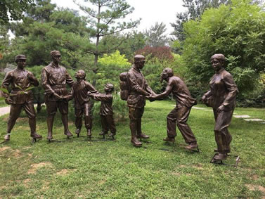 勝利大道全面反映抗戰(zhàn)時(shí)期八路軍戰(zhàn)士英勇抗敵,與日軍斗智斗勇,最終取得勝利的畫面。畫面包括:地道戰(zhàn)、地雷戰(zhàn)、小兵張嘎、雞毛信、鐵道游擊隊(duì)、雁翎隊(duì)、狼牙山五壯士、白求恩、聶耳(義勇軍進(jìn)行曲)、黨的兒女、歡慶勝利、支援前線、雙槍李向陽(yáng)、百團(tuán)大戰(zhàn)、送子參軍、消息樹(shù)、紅燈記等21 組雕塑。