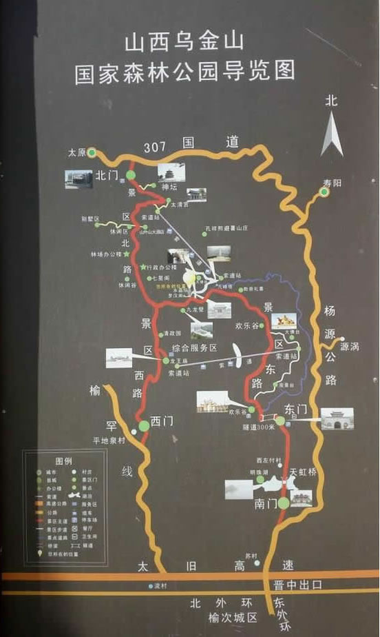 烏金山位于山西省晉中市榆次區(qū)境內(nèi),自古就是避暑勝地。北部與太原市相連,地勢(shì)北高南低,群山疊嶂,奇峰毓秀,海拔1200--1489米,有天然森林三萬畝,松柏密集,植被隆厚,白皮松婷婷玉立,側(cè)柏風(fēng)姿卓然,油松蒼勁挺拔,冠蓋奇特?偯娣e5.5萬畝,森林面積3.1萬畝,森林覆蓋率達(dá)80%以上。境內(nèi)有佛教建筑水晶院、正壽寺、華嚴(yán)寺、和合寺、大佛臺(tái)、西晉王廟遺址,又有道教建筑太清宮、呂洞賓詞碑、玉皇閣、龍王廟、五爺廟、九峰塔以及孔祥熙避暑別墅等景點(diǎn)。