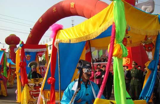 旱船:用竹條或木條制成船的模型,周圍用各色彩布遮蓋。表演者每人一船。以歷史或現(xiàn)代劇目為內(nèi)容,表演時,一人在船前劃船引導,數(shù)人在后駕船,翩翩起舞,并變換各種隊形表演。東寨的旱船表演最為壯觀。
