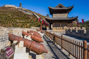 關(guān)城以西的舊關(guān)城俗稱為鐵里門。兩關(guān)之間用石砌長(zhǎng)城相連,并建造了敵樓、烽火臺(tái)等,形成一組完整的防御體系。在舊關(guān)城附近有一段明代建造的白草口長(zhǎng)城,是中國(guó)目前保存最完好的長(zhǎng)城段之一,該段長(zhǎng)城全長(zhǎng)5033米,墻高6-8米,底寬5米,頂寬3米。每隔120米左右,便建烽火臺(tái)和敵樓各一座,在險(xiǎn)要的地段,還設(shè)置了堡寨、壕溝和暗門等。它的東西兩端向北延伸后,最終與外長(zhǎng)城相連。
