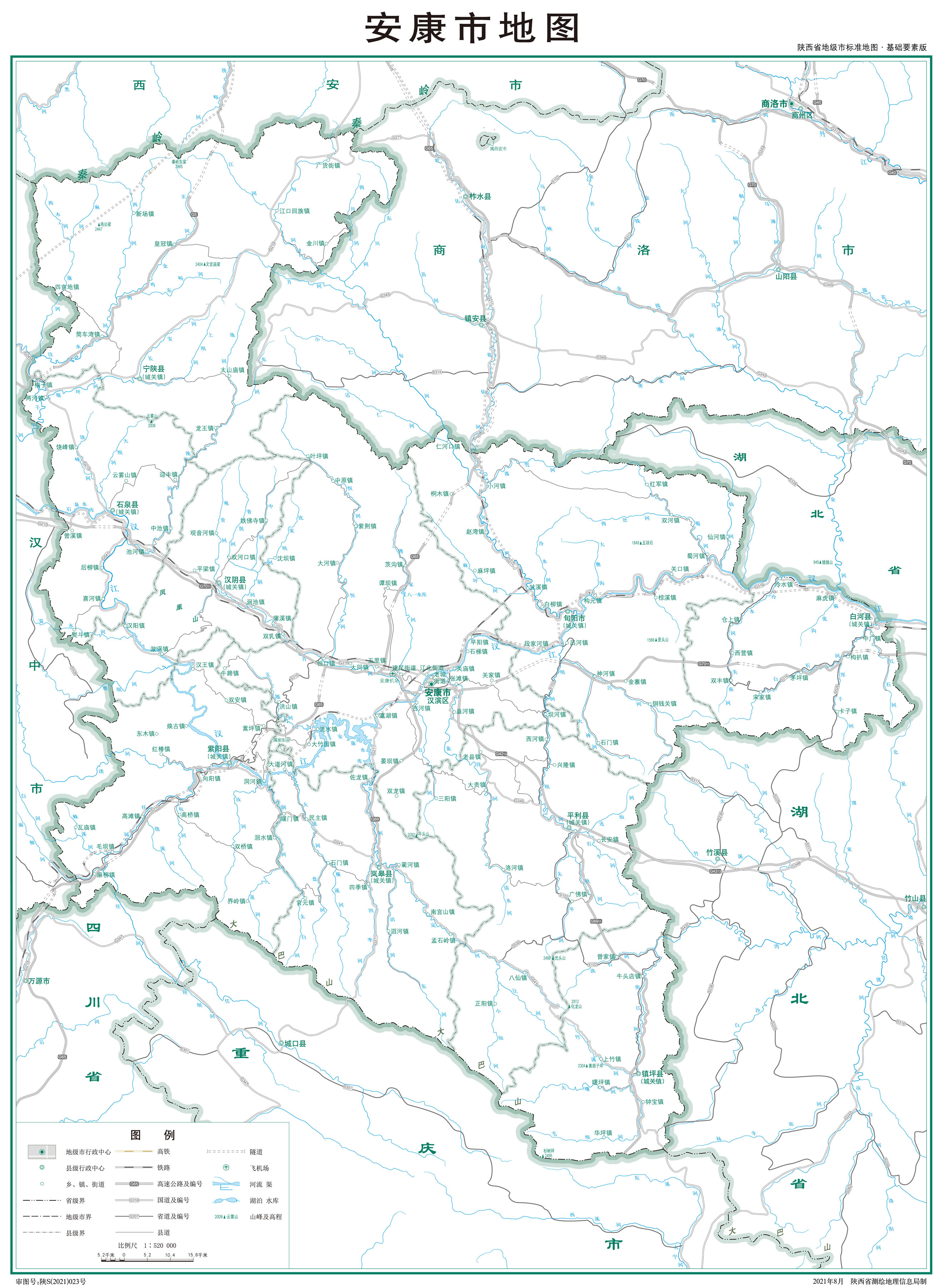 安康市轄1個區(qū)、8個縣,代管1個縣級市: