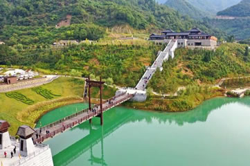 銅錢峽、西峽位于公園西南部,應屬于地質構造類景觀。銅錢峽,兩邊懸崖絕壁,一流清水從峽谷潺潺流過。河流、峽谷、道路三位一體。動與靜相結合,平展與高大相對比,形成了良好的景觀意境。西峽緊鄰銅錢峽,長1.5公里,沿途奇山繡水,兩面絕壁對峙,枯藤倒掛,鳥雀啼鳴,溪水從谷底流過,時而靜如少女,靜靜流淌,時而飛流直下,流入潭中,噴珠濺玉,頗具青山秀水之美。