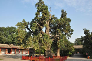 黃帝手植柏是中國現(xiàn)存最古老的柏樹,1982年,英國林業(yè)專家羅皮爾考察了27個(gè)國家的柏樹后,認(rèn)為唯有黃帝手植柏最粗壯、最古老,稱贊它是“世界柏樹之父”。1998年12月9日,“中華名樹公選養(yǎng)護(hù)委員會(huì)”將黃帝手植柏評(píng)為中華百棵名樹之首,世人譽(yù)之為“世界柏樹之冠”。