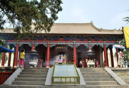 沿中軸線北行即到誠心亭,原稱過亭,面闊五間,進(jìn)深一間,面積約85平方米。歇山頂上,灰布板瓦與筒瓦緊緊相扣,前檐施勾頭滴水,四邊無墻,欄額下為花格裝飾,旋子彩繪。明間南北兩側(cè)臺(tái)基石砌如意踏步,次間、補(bǔ)間外側(cè)有圍欄圍護(hù)。亭柱上書有兩幅楹聯(lián):“觀天地生物氣象,讀古今經(jīng)世文章”;“誠朝圣地人文祖,心祭神州兒女情”。