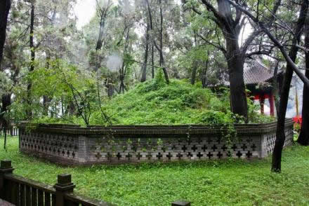 陵冢為土冢,扁球狀,高3.5米,直徑為16米,周長48米,有磚墻圍護(hù)。土冢下部筑方形墓臺(tái),以烘托陵墓的神圣感。方臺(tái)與圓冢相結(jié)合,上圓下方,具有“天圓地方”、“天地相合”的象征意義。