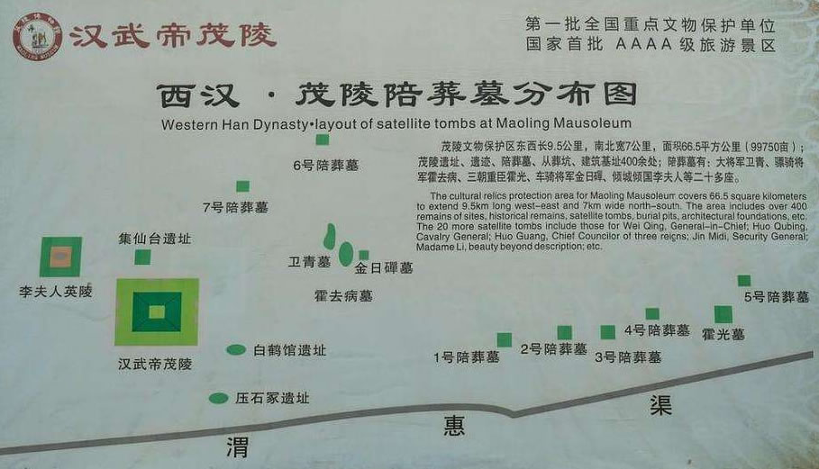 茂陵陪葬墓和其他漢陵的陪葬墓的奇異之處在于都有“象征”的說(shuō)法和意義,例如衛(wèi)青墓、霍去病墓、李夫人墓等。