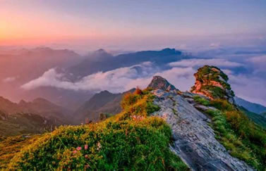 太白山千峰競秀,萬壑藏云。在海拔2000米以上的地方,可看到極其壯觀的云海,以平安寺為最。平安寺地處海拔2700米的山梁上,周圍群峰聳立拱峙,勢若圍屏,山峰間溝壑寬闊,深邃莫測。向南展眸,拔仙臺、跑馬梁、鰲山相連如駝峰顯現(xiàn)。向西北遠眺,桃川河帶狀蛇迥,隱隱可見。站在平安寺,但見云層如海濤洶涌,變幻多端。時而“涌濤掀浪”,不可遏止,時而“風平浪靜”,霧散云匿,時而濃云密霧鋪天蓋地,時而白云輕如鮫綃。朝、夕晴朗之時,云海霞光映金,景色煥然一新。置身云海之中,使人有進入神話傳說的仙境之感。