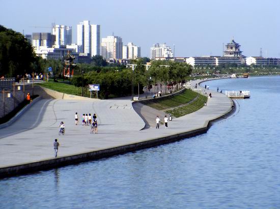 咸陽湖,西起咸陽市秦都區(qū)渭濱辦南營村,東至機(jī)場高速公路橋,全長15.56公里。一期規(guī)劃的“咸陽湖”位于咸陽鐵路橋以東450米處至中華小區(qū)西側(cè),長5500米,水面寬度350至400米。