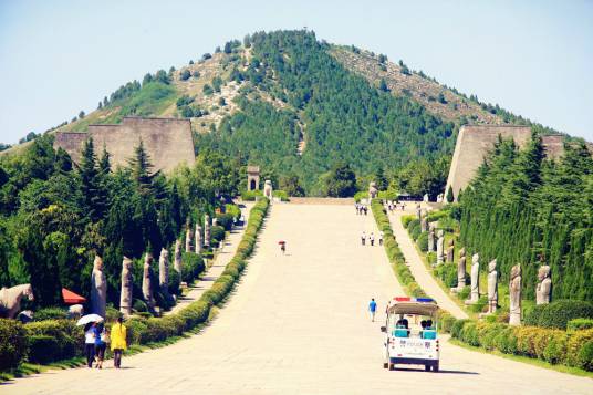 乾陵是第一批全國重點(diǎn)文物保護(hù)單位,也是盛唐文化的代表性旅游區(qū),位于乾縣城北6千米的梁山上,是中國唐王朝第三代皇帝高宗李治和中國歷史上唯一的女皇帝武則天的合葬陵,仿唐長安城格局構(gòu)筑,分為宮城、皇城和外城三個(gè)部分。內(nèi)城面積約為230萬平方米,有南朱雀、北玄武、東青龍、西白虎四門,外城周長40千米,F(xiàn)存有華表、翼馬、無字碑、六十一蕃臣石像等精美絕倫的大型石刻100多件。陵園的東南隅分布有17座陪葬墓,出土以唐三彩為代表的珍貴文物4000余件,壁畫1200多平方米,石雕線刻畫150平方米,其中永泰公主墓、章懷太子墓和懿德太子墓地宮已對(duì)中外游客開放,為國家4A級(jí)旅游景區(qū)。