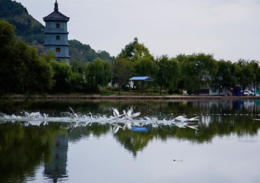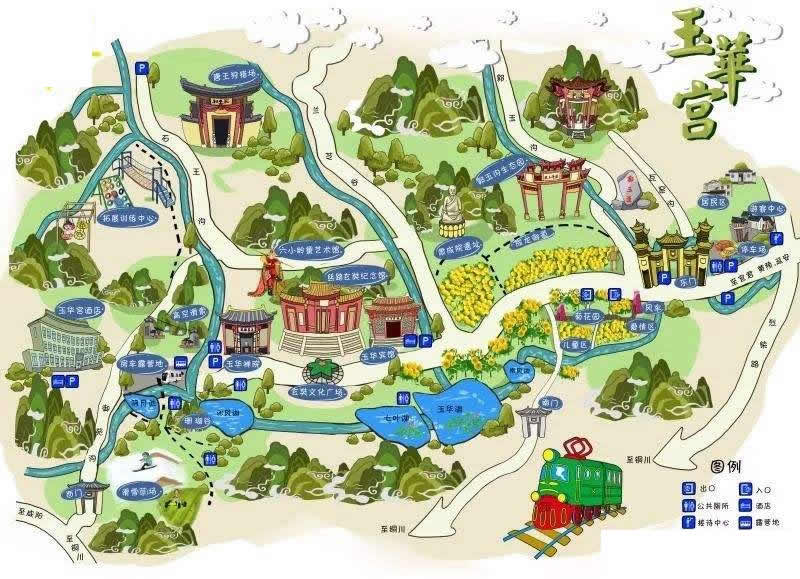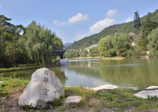 玉華宮東宮也叫郭玉溝,樹木郁蔥,清泉細流,天然巖窟鬼斧神工,人文景觀與自然景色渾然一體,若仙境一般。初春,山花爛漫,到玉華宮賞花,沉醉于山花爛漫之中,流連忘返;盛夏,溪回松風,曠然神怡,到玉華宮避暑,置身天然氧吧,感受郭玉溝的清爽和寧靜;金秋,秋菊盛開,色彩斑斕,到玉華宮游園,體驗陶淵明“采菊東籬下,悠然見南山”的閑情;隆冬,銀裝素裹,冰雕燈展 喜迎四方游客。
