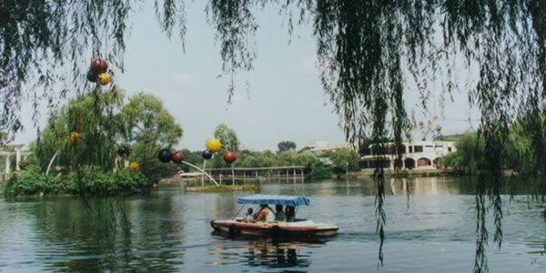 怡湖園:位于成都市北郊青白江新建成綿高速公路旁的怡湖公園,距離成都市區(qū)約30公里,占地約213畝,其中湖面積約70畝。該園于1986年由青白江區(qū)建委動(dòng)工興建,短短兩年多時(shí)間建成,于1988年正式對(duì)外開放。怡湖公園屬于現(xiàn)代化的大型綜合公園,該園以其強(qiáng)烈的現(xiàn)代化氣息的城市園林風(fēng)格建筑和異域情調(diào)吸引了成千上萬的中外游客,上海學(xué)林出版社曾將該園編入面向國內(nèi)外發(fā)行的《中國旅游名勝》畫冊(cè)。該園大門,設(shè)計(jì)精巧,造型獨(dú)特,雅致舒暢,極富象征意義。