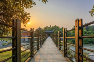 安瀾索橋又名“安瀾橋”、“夫妻橋”。位于都江堰魚嘴之上,橫跨內(nèi)外兩江,被譽(yù)為“中國(guó)古代五大橋梁”,是都江堰最具特征的景觀。始建于宋代以前,明末(17世紀(jì))毀于戰(zhàn)火。古名“珠浦橋”,宋淳化元年改“評(píng)事橋”,清嘉慶建新橋更名為“安瀾橋”。原索橋以木排石墩承托,用粗竹纜橫掛江面,上鋪木板為橋面,兩旁以竹索為欄,全長(zhǎng)約500米,橋?yàn)殇撍骰炷翗丁?/p>