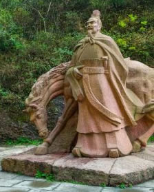 孔明立關(guān)像南,有尊雕塑是蜀漢先主劉備。劉備在成都定都以后,于建安二十二年(217年)設(shè)立了劍閣縣,隸屬于劍門關(guān),加強(qiáng)了對(duì)劍閣的防守,以劍閣為中心,將漢中到成都的一千多里連成了一個(gè)整體,保證從成都至梓潼,穿劍閣過葭萌、白水,到陜西勉縣陽安關(guān)、漢中這條劍閣道的安全和暢通,為以后諸葛亮出祁山、姜伯約伐中原創(chuàng)造了條件打下了基礎(chǔ)。據(jù)有關(guān)資料記載,劉備在稱帝之前,就四次往來于劍門關(guān),加上《三國演義》第六十五回?cái)⑹龅膭湓谶M(jìn)軍成都擊劉璋途中,又返回葭萌關(guān)看張飛和馬超廝殺,共往返六次之多。