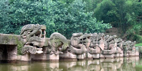 瀘縣被命名為中國龍文化之鄉(xiāng)。瀘縣的龍文化源遠流長,內(nèi)容豐富,主要包括龍舞、龍橋、龍雕。漢代的漢棺上就有龍雕,后來有以國寶龍腦橋、順對大橋等一批名橋為代表的140余座龍橋群體,有各種青龍雕刻為特色的國寶宋代石刻,還有國家級非物質(zhì)文化遺產(chǎn)---雨壇彩龍。