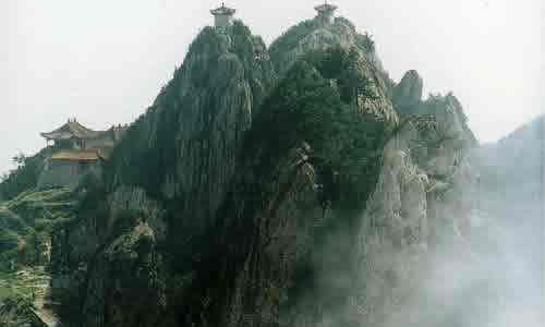 鎮(zhèn) 老君山風景區(qū)位于鎮(zhèn)西鎮(zhèn)境內(nèi),由大、小老君山、寨子巖、河口水庫等組成,距縣城22公里,以其悠久的歷史、深厚的文化沉淀和奇麗險峻的自然風光而聞名。 大老君山自隋威遠建縣以來就是威遠與榮縣的界山,為西周時周武王封周榮公之地,又名榮德山。相傳太上老君曾在此煉丹,唐末五代道士陳摶(自號扶搖子,宋太宗賜號希夷先生)曾在此修真,故又名希夷山。老君山從唐宋以來就已成為道家的修煉之地和風景名勝之地,清乾隆《威遠縣志》稱為"老君丹灶",是威遠八景之一。老君山海拔800多米,雄奇瑰麗,方若削壁,高矗云表,有華山之險。從山腳到山頂,只有一條狹窄陡峭的曲折小道,攀登時須手腳并用方可。山西南面崖壁上刻有四則題詩、四龕唐宋造像、三通摩崖碑和三則題字。摩崖造像中保存完好又富有代表性的是太上老君及侍者力士造像。其中佛道合龕造像在四川極為罕見。題詩以清末翰林、榮縣詩人趙熙的一首最為精彩:"一念前生墮世間,飄然人外御風還。秋來化鶴三千歲,獨立榮州第一山。"三則題字分別為"煙霞"、"云梯"、"丹巖"。在山的西南面,有一古洞,相傳是太上老君煉丹時居住之地,人稱"神仙洞"。大老君南面為呂仙崖,上有四龕唐代摩崖造像,山上尚保存古寨集生寨城墻遺址。 寨子巖山寨位于去老君山途中的煙廠河壩,為清咸豐年間建造,現(xiàn)保存寨墻一段、石室一間,有月亮門、楊家大院遺址及"天寶亭"、"玩花臺"、"臥鵂橋"等10余處石刻題字,其中半山腰處一兩米見方的"鵂"字為威遠迄今為止發(fā)現(xiàn)的最大刻字。寨下河中有一蘑菇狀巨石,兀立于一方硬石之上,似搖搖欲墜,又穩(wěn)若磐石,人稱"牛心石"。 小老君山在大老君東側約6公里處,尖聳秀拔,山頂面積不過50平方米,整個山形似雄鷹展翅欲飛。山下即是河口水庫,湖水清澈,碧波蕩漾。水庫源頭有一碗口粗大的泉水,從石縫中涌出,這就是有名的"龍洞泉水"。 景區(qū)附近還有字庫塔、抗日陣亡將士紀念碑、碧佛洞等景點。鎮(zhèn)西的醬蘿卜、花生糖為久負盛名的地方特產(chǎn)。鎮(zhèn)西鎮(zhèn)有公共汽車直達老君山腳一中巖洞。 |