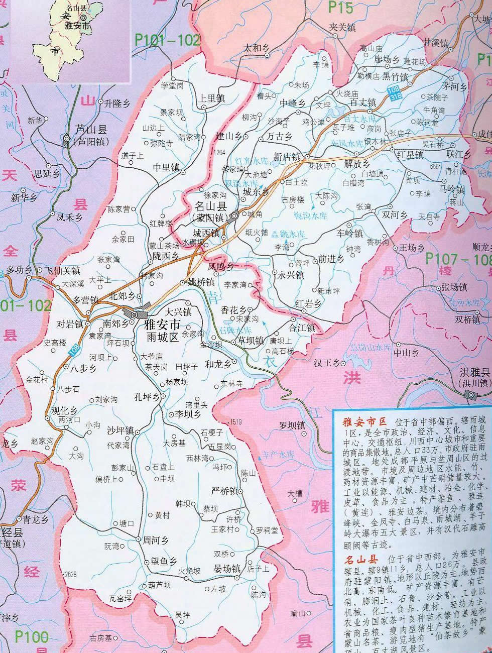 雅安市雨城區(qū)是古南方絲綢之路,曾為西康省省會(huì),F(xiàn)為雅安市人民政府所在地,是全區(qū)政治、經(jīng)濟(jì)、文化、科技和交通中心。區(qū)境幅員面積1066.99平方公里。轄24個(gè)鄉(xiāng)鎮(zhèn),191個(gè)村,4個(gè)街道辦事處,32個(gè)居委會(huì),常住人口32萬(其中城區(qū)人口13萬)。氣候宜人,年平均氣溫16.2℃,冬曖夏涼,空氣清新,享有“雨城”之美稱。屬亞熱帶濕潤(rùn)季風(fēng)氣候。1983年9月,經(jīng)國務(wù)院批準(zhǔn)改設(shè)雅安市至2000年12月,2000年6月,經(jīng)國務(wù)院批準(zhǔn)改設(shè)雅安市雨城區(qū)至今。1988年被國家列為對(duì)外開放城市,1998年被省上列為可持續(xù)發(fā)展實(shí)驗(yàn)區(qū)。是四川省歷史文化名城和新興的旅游城市。