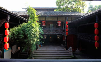 王朝聞故居(添壽堂)位于古鎮(zhèn)進(jìn)士牌坊下側(cè),立木結(jié)構(gòu),是川南典型四合院,面積500平方米,院內(nèi)天井50平方米,有明代古井一口,一方戲樓,三方廂樓,木雕精美。故居分為戲樓、正堂、客廳、臥室、天井、作坊室、偏房等。正堂供奉神龕、神案,左右置太師椅。作坊室是王朝聞少年時(shí)代使用的碾子、龍骨車、風(fēng)簸、簸箕、撮箕、蓑衣、斗筐、鋤頭、犁耙等。