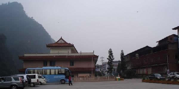紅佛寺所在羅家?guī)r鏡子坎形成的山勢被古人喻為:“蝙蝠雙翼”又形如一把護(hù)手椅。據(jù)資料記載,在這一帶過去滿山蒼松翠杉;古柏參天;藤纏蔓繞;郁郁蔥蔥;簧竹掩影;小徑通幽;山上霧靄繚繞;山澗流水潺潺。翻天坎,過平橋,溯明湖和如鏡的天堂河而上有“流杯回觴”的妙景。沿小溪傍石階慢步登高,一路上有眠云石,觀音崖等自然景觀,到此半山,紅佛寺靜臥林中,崖壁間,人們常說的“眠龍臥蛟”的大小龍洞流溢出潺潺清涼,仰眺云端,鐘秀峰宛如一口大鐘聳峙在群峰之中,屹立在鐘秀峰的南照塔也隱現(xiàn)在山頂蒼翠之中。