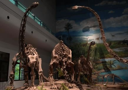 1.藏量巨大。館藏恐龍及魚類、兩棲類、龜鱉類、蛇頸龍類、鱷類等個體200多具。其中恐龍種類包括原蜥腳類、蜥腳類、獸腳類、鳥腳類和劍龍類等,數(shù)量占全川總數(shù)的1/2,占全國總數(shù)1/6,是名副其實的全國第一大恐龍冢穴,在國際上與之齊名的也僅有美國猶他州國立恐龍紀(jì)念館和加拿大阿爾伯塔省立恐龍公園。