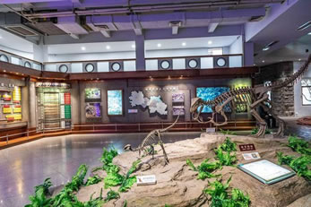 自自貢恐龍博物館的現(xiàn)有基本陳列“侏羅紀(jì)恐龍世界”,按照“恐龍世界——恐龍遺址——恐龍時代的動植物——珍品廳——恐龍再現(xiàn)”順序展開,吸收現(xiàn)代陳列理念,采用場景式展示、擬人化組合,輔之以聲、光、電及多媒體等展示手段,展開了一幅蔚為壯觀、神奇瑰麗史前畫卷,再現(xiàn)了由恐龍及許多早已消失的物種構(gòu)成的神秘多姿的侏羅紀(jì)時代。同時,還突出展示了博物館的精華—化石埋藏現(xiàn)場,給人以強(qiáng)烈的視覺沖擊和心靈震撼,充分體現(xiàn)了專業(yè)博物館與遺址博物館的雙重特色。