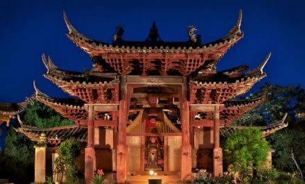 木門寺無際禪師亭為四川省省級文物保護單位。創(chuàng)建于明洪熙元年(1425年),位于安岳縣城北25千米處的清涼山,因亭除門系木制外皆石砌成,故此得名。無際禪師亭為石砌仿木建筑的無梁方殿,坐北朝南,外觀如“介”字形。寺后有大雄殿,依山而建。
