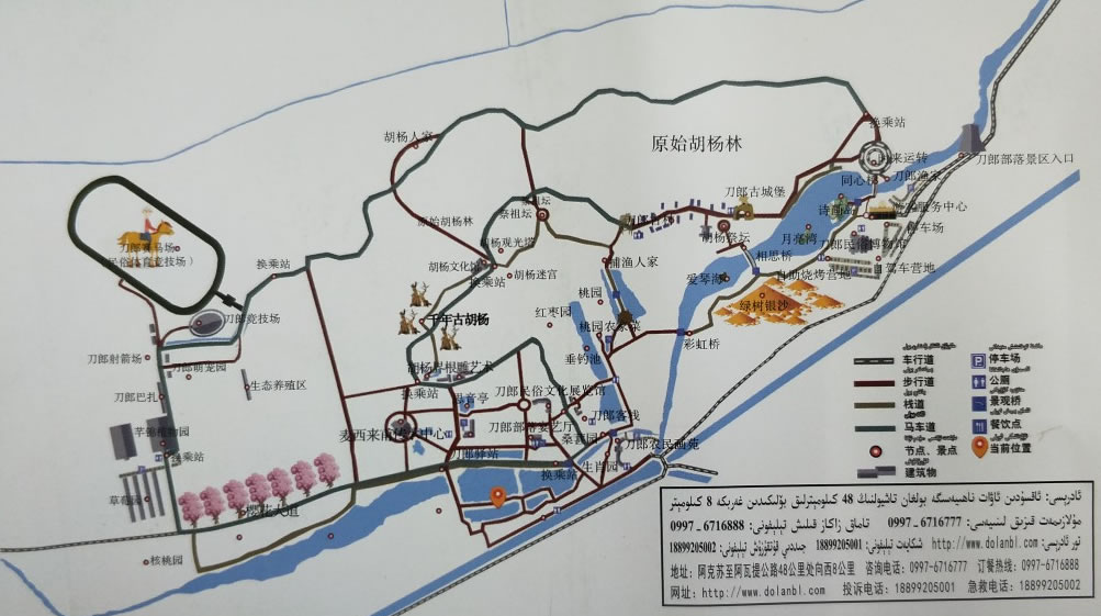 刀郎人是新疆塔里木盆地周圍的原始居民,一直生活在與世隔絕的大漠綠洲之中,保持了特有的民俗風(fēng)情。這里有一處民俗展覽館,可以進(jìn)入?yún)⒂^,深入了解刀郎民族的故事。另外,這里還有葡萄園、無花果園、垂釣區(qū)、自助燒烤區(qū)、農(nóng)莊等,可以前來娛樂,品味刀郎美食 體驗(yàn)濃郁民俗風(fēng)情。 景區(qū)東部,則是以胡楊林風(fēng)光為主,這里大片的原始胡楊林,可以前來觀看這些大漠上最堅(jiān)韌的樹種,拍攝攝影大片。在東部的南側(cè),有一處原始刀郎人村莊,復(fù)制了很多刀郎民族生活的場景,有房屋、木車、勞作工具等,可以前去參觀。