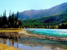 喀納斯風(fēng)景區(qū),位于新疆阿爾泰山中段,地處中國(guó)與哈薩克斯坦、俄羅斯、蒙古國(guó)接壤地帶,景區(qū)面積10030平方公里。喀納斯國(guó)家級(jí)風(fēng)景區(qū)的核心精華系冰川強(qiáng)烈刨蝕,冰石表物陰塞山谷,形成終表壟而成湖泊。湖面海拔1375米。湖形如彎月,長(zhǎng)24.5公里,平均寬1.9公里,平均水深90米,最大深188.4米,面積6.9萬(wàn)畝,蓄水量40億立方米,為中國(guó)深水湖之一。