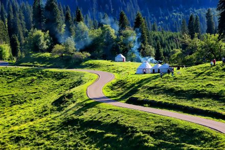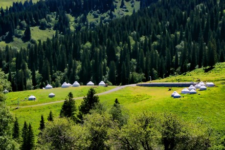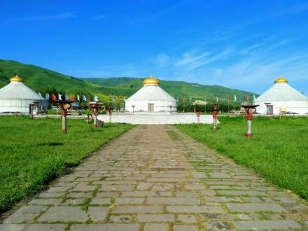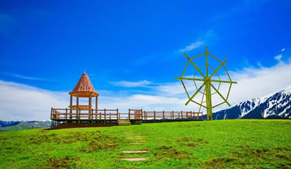 哈薩克語為草原會客廳,是古時候草原民族商量重大事宜的地方,現(xiàn)為景區(qū)河谷草原線路的綜合服務(wù)區(qū)。可供游客體驗(yàn)騎馬、射箭、民族服裝留念、古道馬車、草地摩托車、住宿、直升機(jī)觀景等娛樂項目、餐以及住宿服務(wù)。