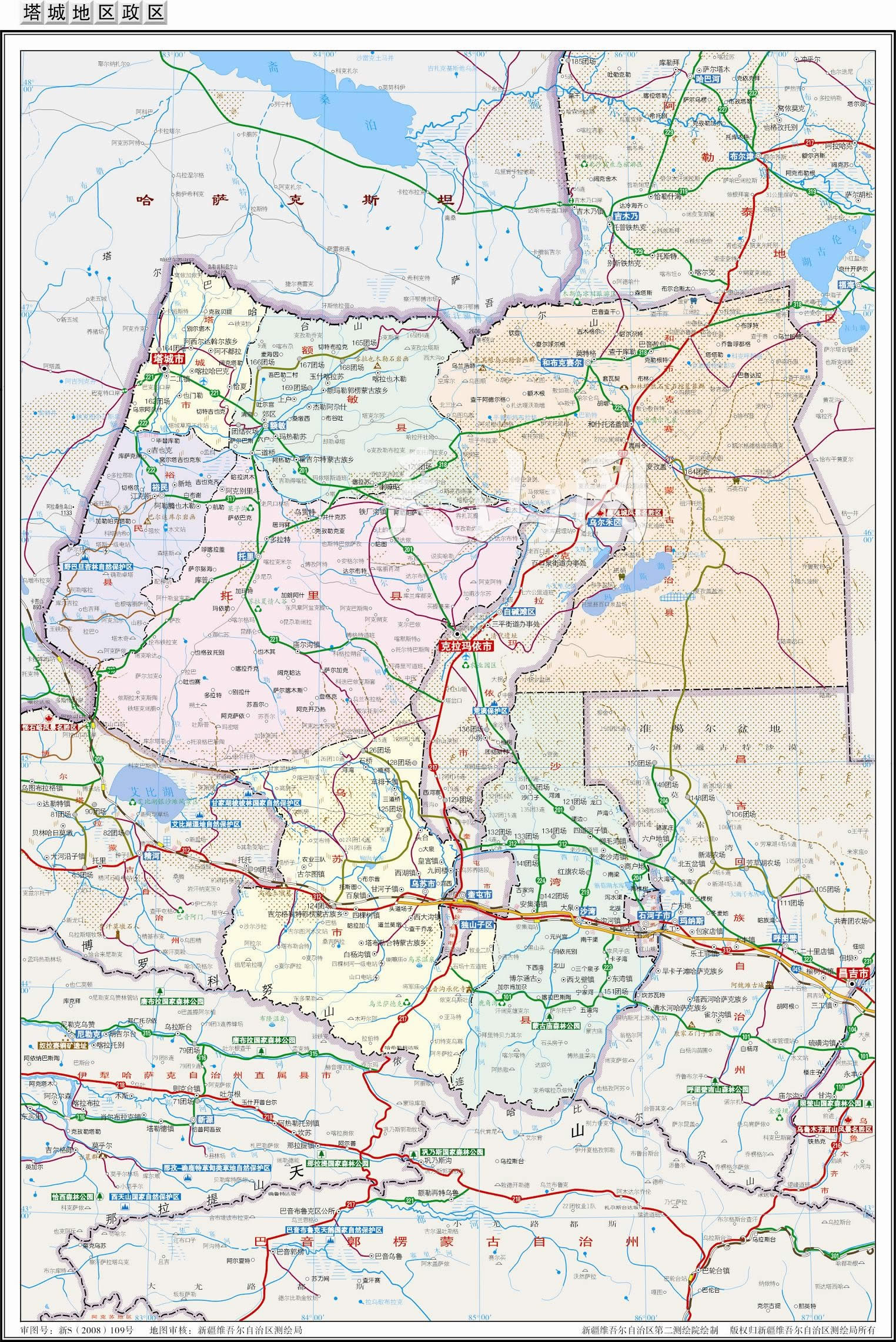 塔城地區(qū)轄3個(gè)縣級(jí)市、3個(gè)縣、1個(gè)自治縣: