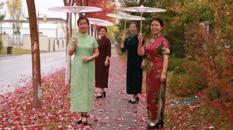 小鎮(zhèn)的雨,是天地間最奇妙的調(diào)色盤,它懂得用豐富的色彩調(diào)和季節(jié)的輪回。打濕銀杏時,雨便成了金黃;灑落楓樹時,雨便成了火紅;浸潤松柏時,雨又化作濃綠……長街、小路被洗的油亮,早落的黃葉,粘在濕漉漉的石面上,像一枚精致的書簽,應(yīng)和著“秋雨梧桐葉落時”的意境;路上的行人并不匆忙,而是踏著雨聲的節(jié)拍,在“斜風細雨不須歸”的悠然中,邂逅墻角那叢“菊散金風起”的絢爛。偶有身著旗袍的女子,撐一把油紙傘,在飄落一地的紅楓葉上款款漫步。那身影穿過雨幕,恍若從水墨長卷中走出的意象,在現(xiàn)實與夢境之間翩翩起舞;雨聲里飄來山居食堂的暖香,水汽與雨霧在空中交融,織就“寒夜客來茶當酒”的溫潤時光。